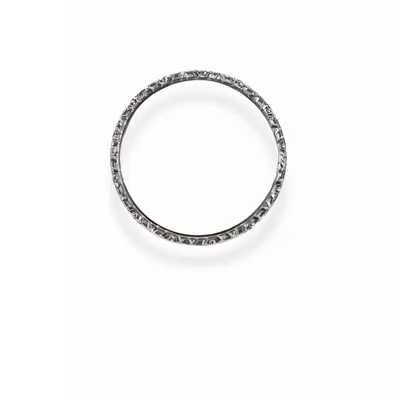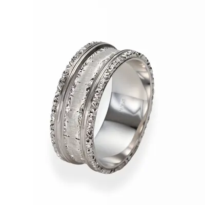 Fedina in platino. Bordo inciso e fascia centrale incisa a millefili.