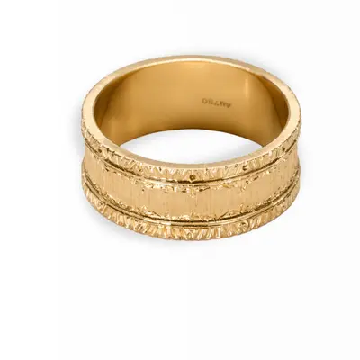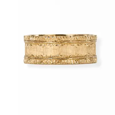 Anello con fascia in oro. Bordo inciso e fascia centrale decorata con incisione millefili.