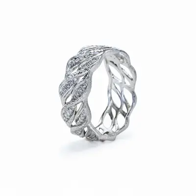Eternelle in platino traforata a motivo ondulato con pavé di brillanti e bordi incisi.