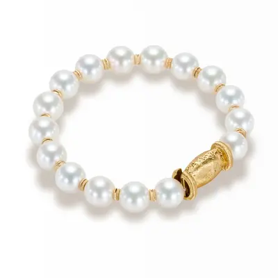 Bracciale composto da 16 perle Akoya da 8,5 a 9,00 mm con chiusura classica elegante in oro finemente incisa e decorata.